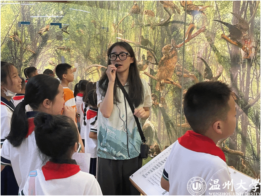 走进温大生环学院动物标本馆展厅内,湿地与森林场景交相辉映,卷羽鹈鹕展翅的瞬间定格成永恒,黑天鹅与鸊鷉栖息于模拟湿地,鹭鸟啼鸣声从背景中流淌而出,仿佛将瓯越山水的灵动尽数搬进展馆。“温州沿海是卷羽鹈鹕全球仅存的百余只个体越冬的关键驿站,守护它们,就是守护我们共同的家园。”团队成员高梓晴指着标本向孩子们介绍时,眼里闪烁着坚定的光。展厅另一侧,隐匿枝叶间的柳莺与画眉标本,引得参观者驻足探寻“只闻其声,不见其形”的林鸟智慧。而展厅C位的“雉类明星”黄腹角雉,羽色斑斓如锦绣,它不仅是国宝级物种,更是温州泰顺乌岩岭自然保护区的生态名片。 这些标本不仅是科研的见证,更成为团队践行社会责任的重要载体——通过联合温州市绿色公益协会,他们将科普课堂延伸至大罗山,用校园内的知识储备为户外生物多样性保护行动提供科学支撑。