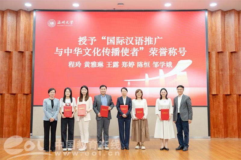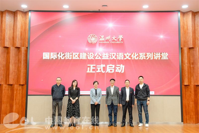 温州市委宣传部、市外办领导为长期致力于国际中文教育事业的教师代表颁发“国际汉语推广与中华文化传播使者”荣誉证书。全体领导共同按下启动装置,“国际化街区建设公益汉语文化系列讲堂”正式开启,将为在温外籍人士提供优质中文学习服务。