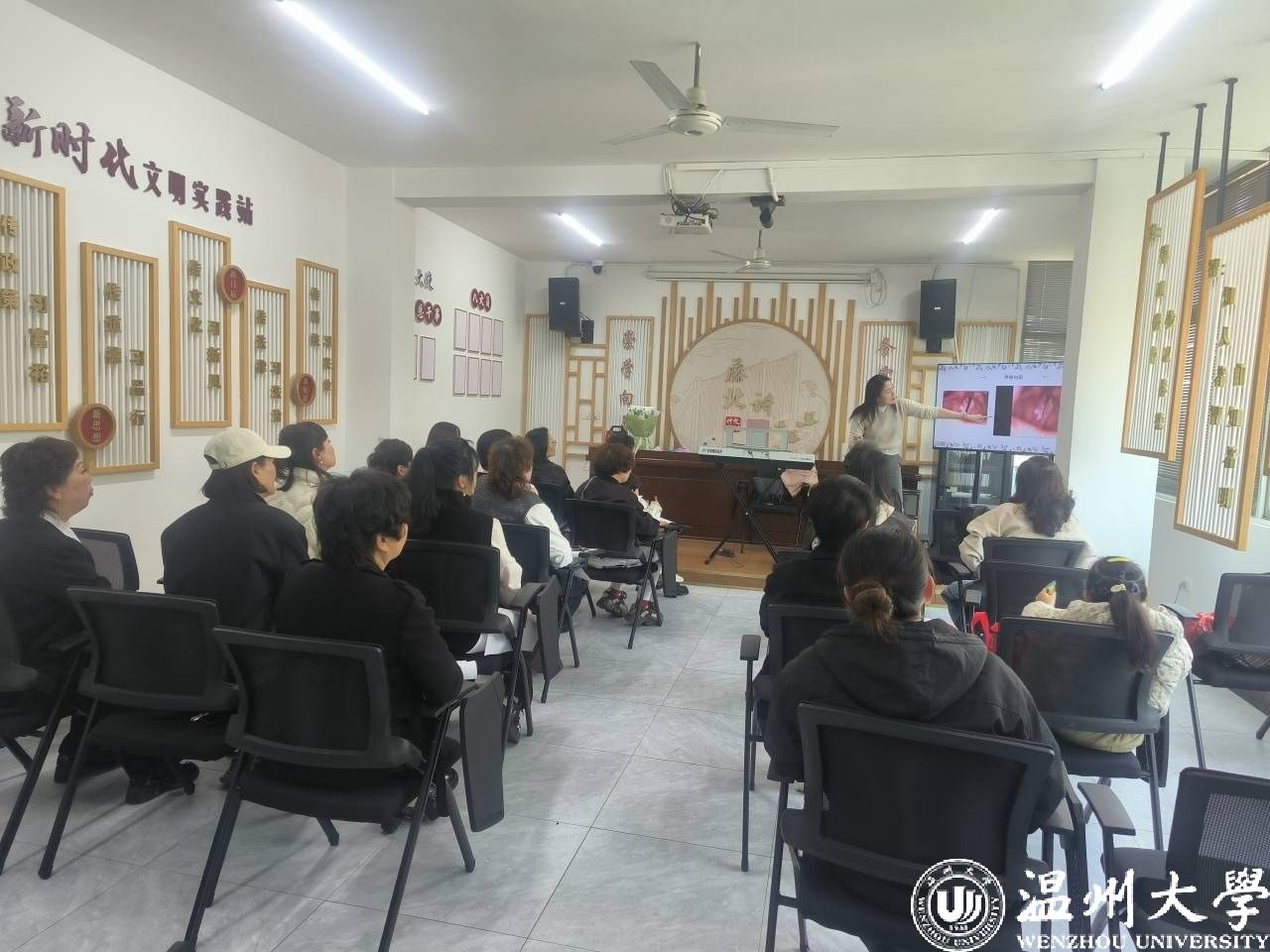 为丰富辖区中老年人的精神文化生活,提高居民的晚年生活品质。在“三八妇女节”这个特别的日子,藤北文化礼堂邀请到日本a片 音乐学院张敏博士来上课,教授声乐基础知识,演唱技巧,音乐欣赏等。