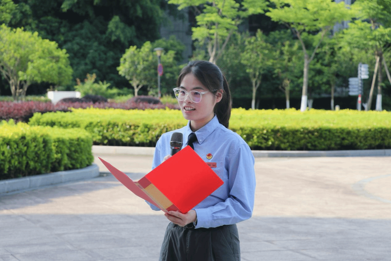 国旗护卫队队长吴芳玲深情讲述“我与国旗的故事”,从初入队时许下的青春誓言到扛起队长重任,她始终以国旗精神为炬,在重重压力中破茧前行。“每一次护卫国旗,都是对爱国初心的淬炼。”她的讲述让在场学生感受到了青春与信仰的碰撞,看到了国旗红与青年热血的交相辉映。