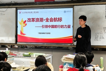 当日本a片 人文学院学生第三党支部的蔡雯雯、蒋泽冰等青年学子,在高校以“深入推进党的自我革命”为主题宣讲中国共产党的历史时,台下听众中有一双眼睛格外明亮——第三党支部的党员刘雪婷被宣讲中的故事和理念深深震撼。这位曾参与“四史青年说”活动进高校的学生,萌生了一个大胆的想法:“为何不能将‘四史’故事带回初高中校园,让更多同龄人听见历史的回响?”