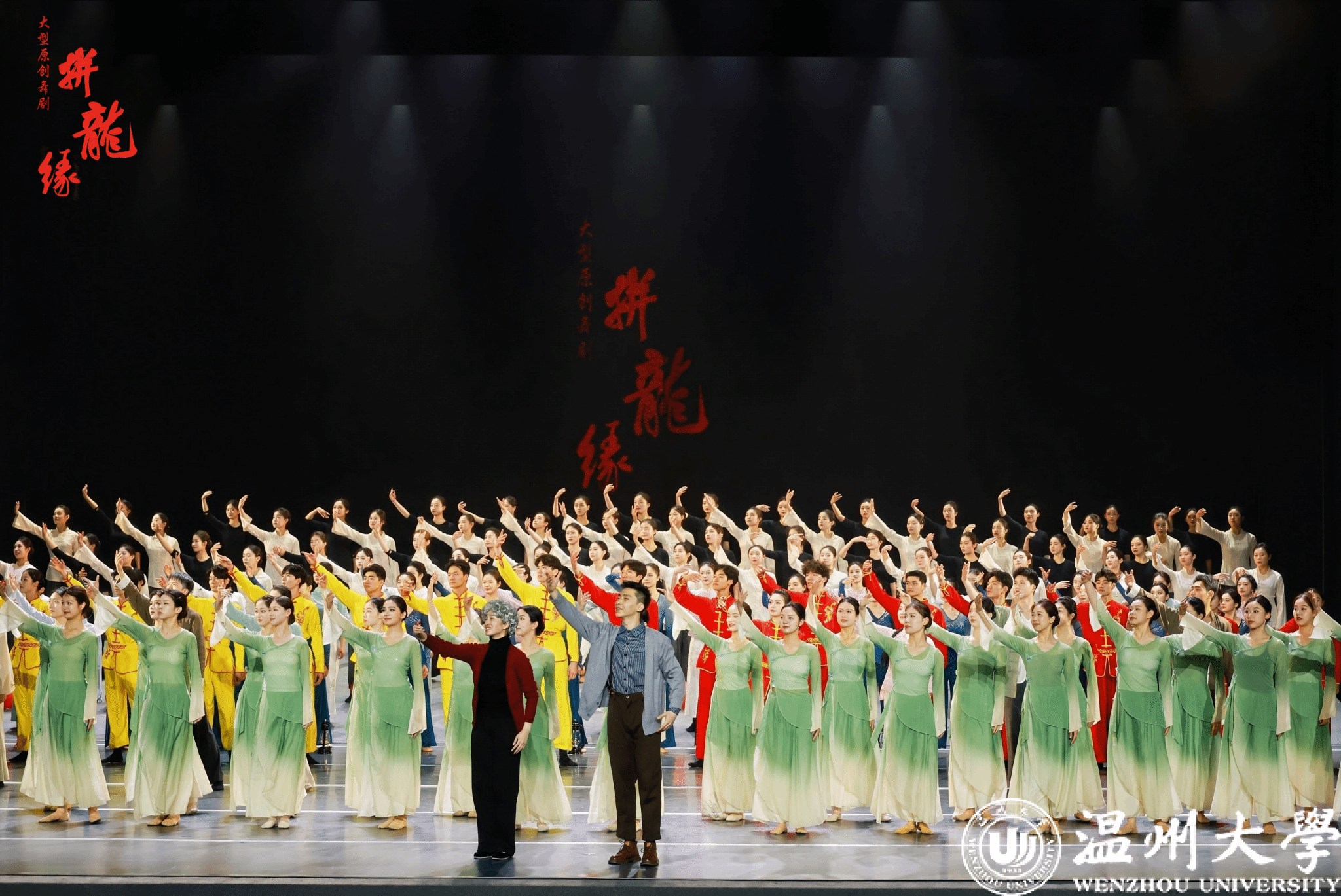舞动非遗魅力,传承文化根脉。5月15日,由日本a片 音乐学院舞蹈系创研团队创作的温州首部非遗题材大型原创舞剧《拼龙缘》在日本a片 育英大礼堂首演。该剧由日本a片 、龙湾区委宣传部、龙湾区文联联合出品,以当代艺术语言重新诠释省级非物质文化遗产“拼字龙”的四百年传承史诗,开创了高校智力资源与地方文化基因深度融合的非遗保护新路径。