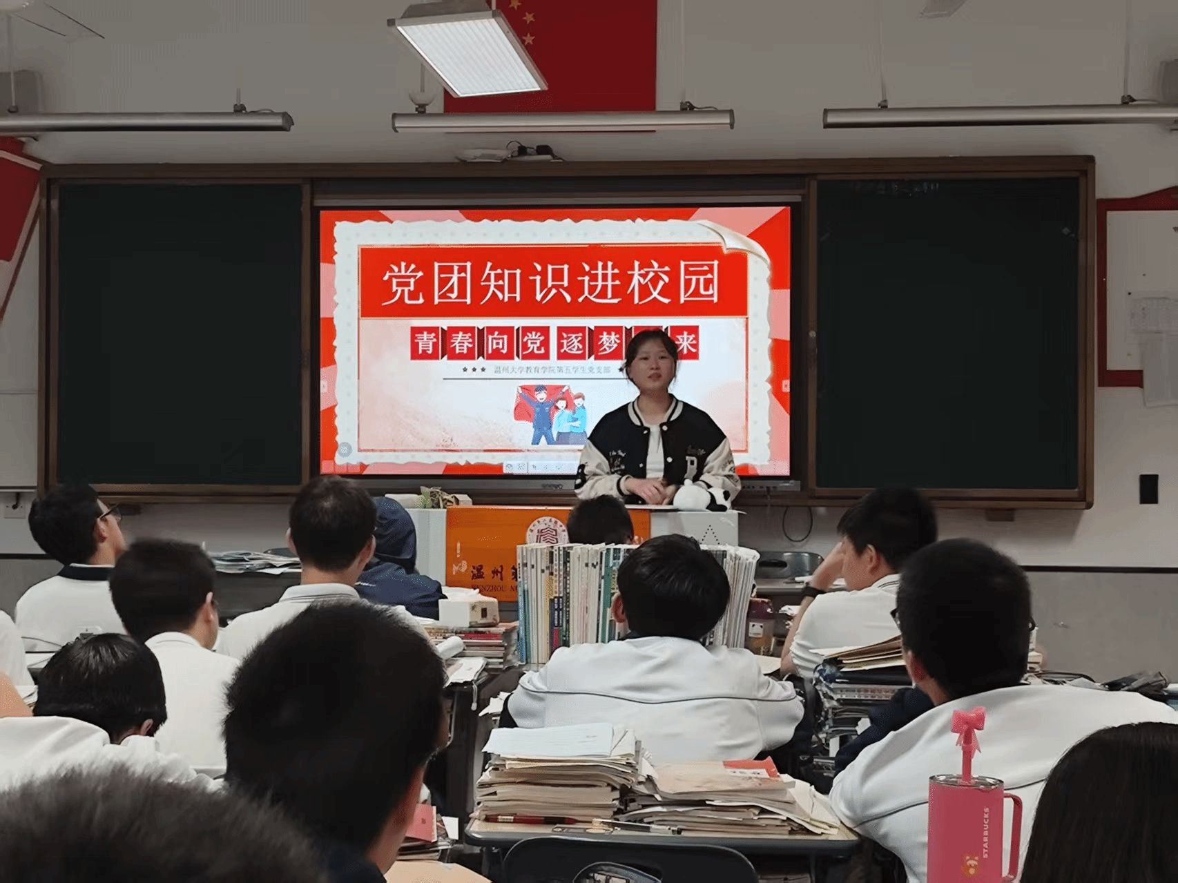 11名大学生党员化身“红色引路人”,开展了一堂流动的、有温度的思政教育课堂。历史纪录片里的烽火岁月、革命影视中的英雄身影,与新时代脱贫攻坚、科技创新的成就画面交相辉映。他们用“五四运动中青年的呐喊”“脱贫攻坚一线党员的脚印”等鲜活案例,将理论性的党团知识转化为听得懂、记得住的“青言青语”,在青少年心中播撒红色的种子。