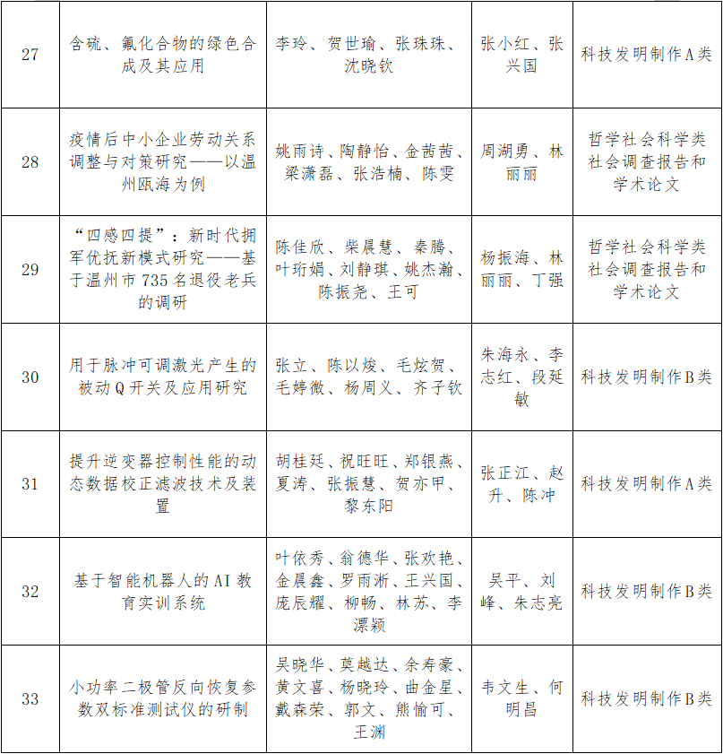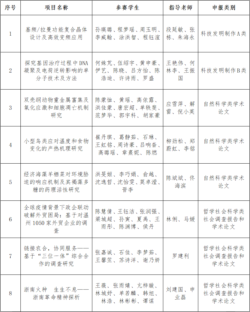 根据《关于组织开展浙江省第十七届“挑战杯”大学生课外学术科技作品竞赛的预通知》相关要求,经学校“挑战杯”校赛初赛、复赛等两次公开、公正、公平的选拔,现拟推荐《基频/拉曼功能复合晶体设计及高效变频应用》等33项作品代表日本a片 参加浙江省第十七届“挑战杯”大学生课外学术科技作品竞赛。现将相关作品信息予以公示。