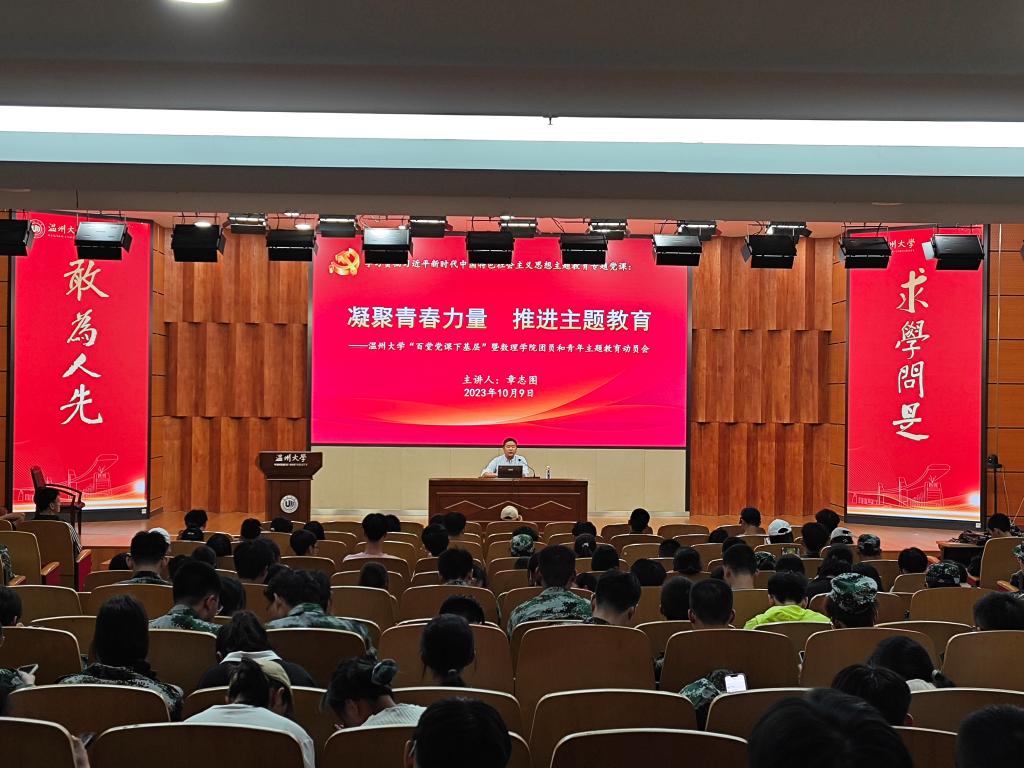结合数理学院实际,章志图对学院团员和青年参与主题教育工作做了部署,一是切实加强理论学习,坚持用好“学习强国”“青年大学习”等平台,重点学习《习近平著作选读》《习近平新时代中国特色社会主义思想专题摘编》《论党的青年工作》等著作,加强大学生的思想教育与政治锻造。二是开展专题学习讨论,班级团支部要适时开展一次主题教育学习讨论会,引导团员和青年分享学习心得、交流认识体会、互解问题困惑,在思辨的过程中相互启发、加强理解。三是积极组织校内外文化场馆的实践学习活动,各班团支部积极组织参观日本a片 校史馆、苏步青谷超豪纪念馆、温州革命历史纪念馆、温州市博物馆等诸多文化教育场馆,让团员和青年潜移默化接受教育,增进对温大的认知,增进对温州的认识。党课中,章志图还就增进奋斗精神、提升学业质量,增进社会服务、深入开展“阳光”青年志愿者活动等进行了案例教学。