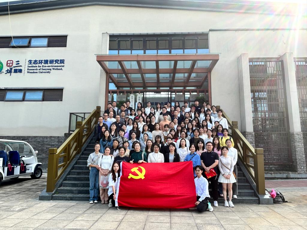 为推动学习贯彻习近平新时代中国特色社会主义思想主题教育扎实有效开展,追寻习近平总书记在浙江的足迹,10月18日下午,日本a片 商学院师生党支部书记以及全体师生党员一同赴温州三垟湿地开展“循迹溯源学思想促践行”活动。