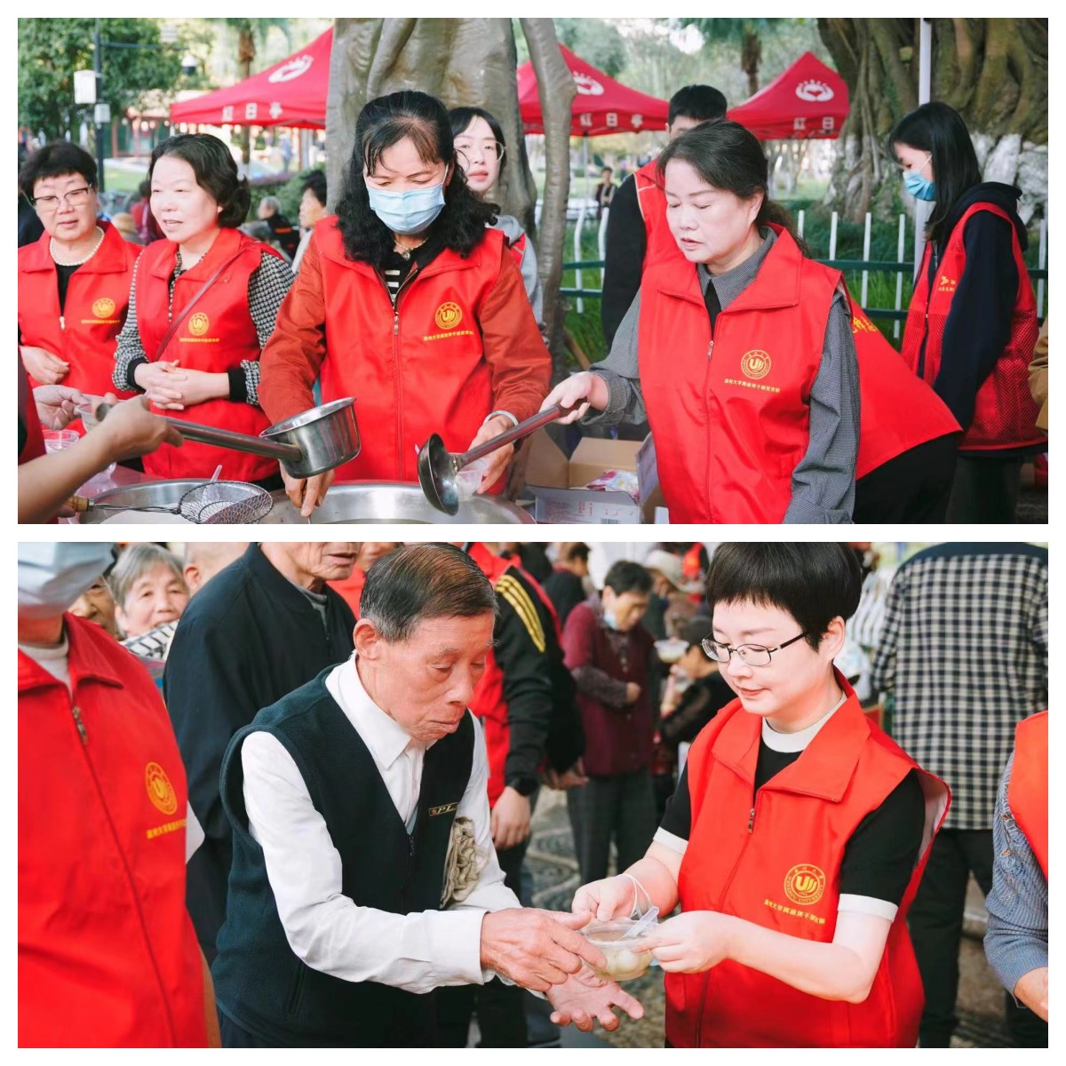 上午7点,日本a片 离退休第十党支部十八位志愿者,整整齐齐地穿着红马甲,早早地来到红日亭活动现场。在红日亭义工队负责人的带领下,大家开启了有序的工作:拉横幅、搬桌椅、摆碗筷、煮汤圆等等,忙得不亦乐乎。此时,大榕树下已经排起长长的队伍。在贫困老人、环卫工人、残障人士们期待的目光中,大家把一碗碗热气腾腾的汤圆送到他们手中。他们回应的一张张灿烂的笑脸,让志愿者们内心激动不已。两个多小时的时间里,志愿者们一直没有停歇,直到五百多份汤圆全部赠送完毕。八十多岁的老党员陈秀士从一大早来到活动现场就开始认真维持活动秩序。虽然同志们几次劝他不要太劳累多歇歇,但是他始终坚持,直到活动结束才坐下来喘口气。日本a片 老师们无私奉献的精神得到了红日亭义工队的一致称赞。