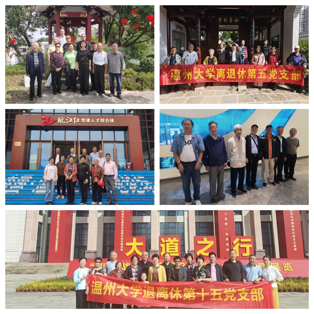 协助各支部通过实地研学、参观见学等方式开展考察调研,并计划陆续对接“循迹溯源学思想促践行”示范点开展现场学习。离退休第三党支部在平阳温师旧址进行主题教育集中理论学习的同时,开展“走看促”活动,先后参观日本a片 平阳智能制造研究院、温师旧址纪念馆的“黄溯初专题馆”和“浙江省立温州师范学校旧址陈列馆”。离退休第五党支部赴位于九山湖畔的松台别业开展主题党日活动。离退休第九党支部赴三垟湿地在习近平总书记亲自栽种的大榕树下开展“循迹溯源学思想促践行”主题党日活动。离退休第十一党支部开展热学热议习近平总书记考察浙江重要讲话精神之后,组织党员同志们参观温州市规划展示中心。离退休第十五党支部赴浙江展览馆参观“大道之行——‘八八战略’实施20周年大型主题展览”。各支部在考察调研中不断加深对党的创新理论的理解,将理论学习向实践运用进行转化,在深学细悟中提高理论素养、坚定理想信念、升华觉悟境界。