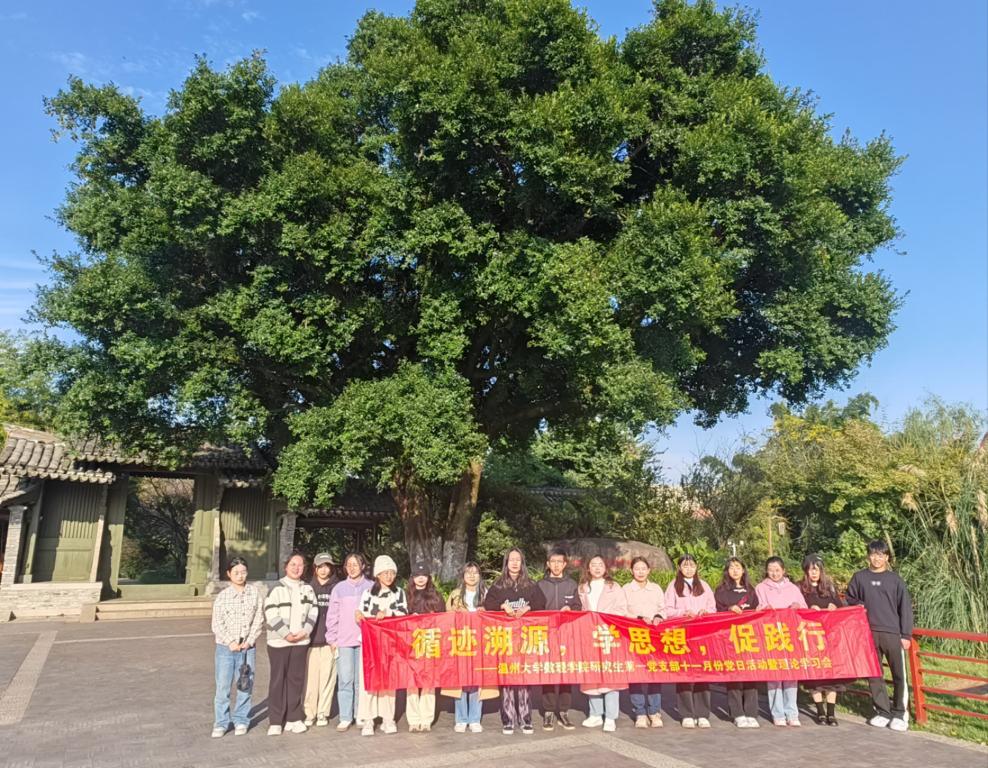 百年风华,红动浙南。温州百年奋斗史留下了很多弥足珍贵的革命史料和红色印记。为推动主题教育走深走实,在实践中追寻红色足迹、赓续红色血脉,11月13日,数理学院研究生第一党支部赴三垟湿地开展以“循迹溯源学思想促践行”为主题的党日活动。支部成员参观了“瓯江红”党建人才综合体、市生态园三垟湿地榕园等地。