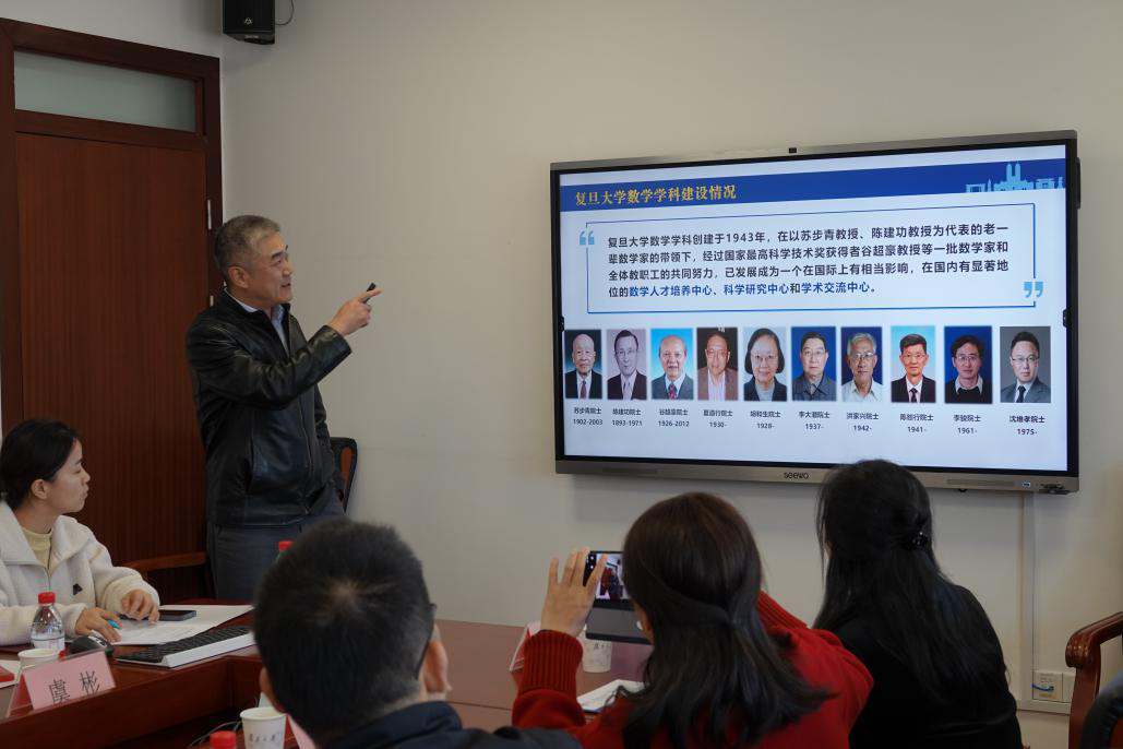 座谈交流会上,双方围绕党建引领数学学科发展的先进经验;党建与引才、科研、学生培养、招生就业与服务地方等业务方面双融双促的特色做法;弘扬科学家精神方面的经验做法等展开交流。复旦大学数学科学学院党委书记王光临,党委副书记刘建峰、陆晶婧等出席。