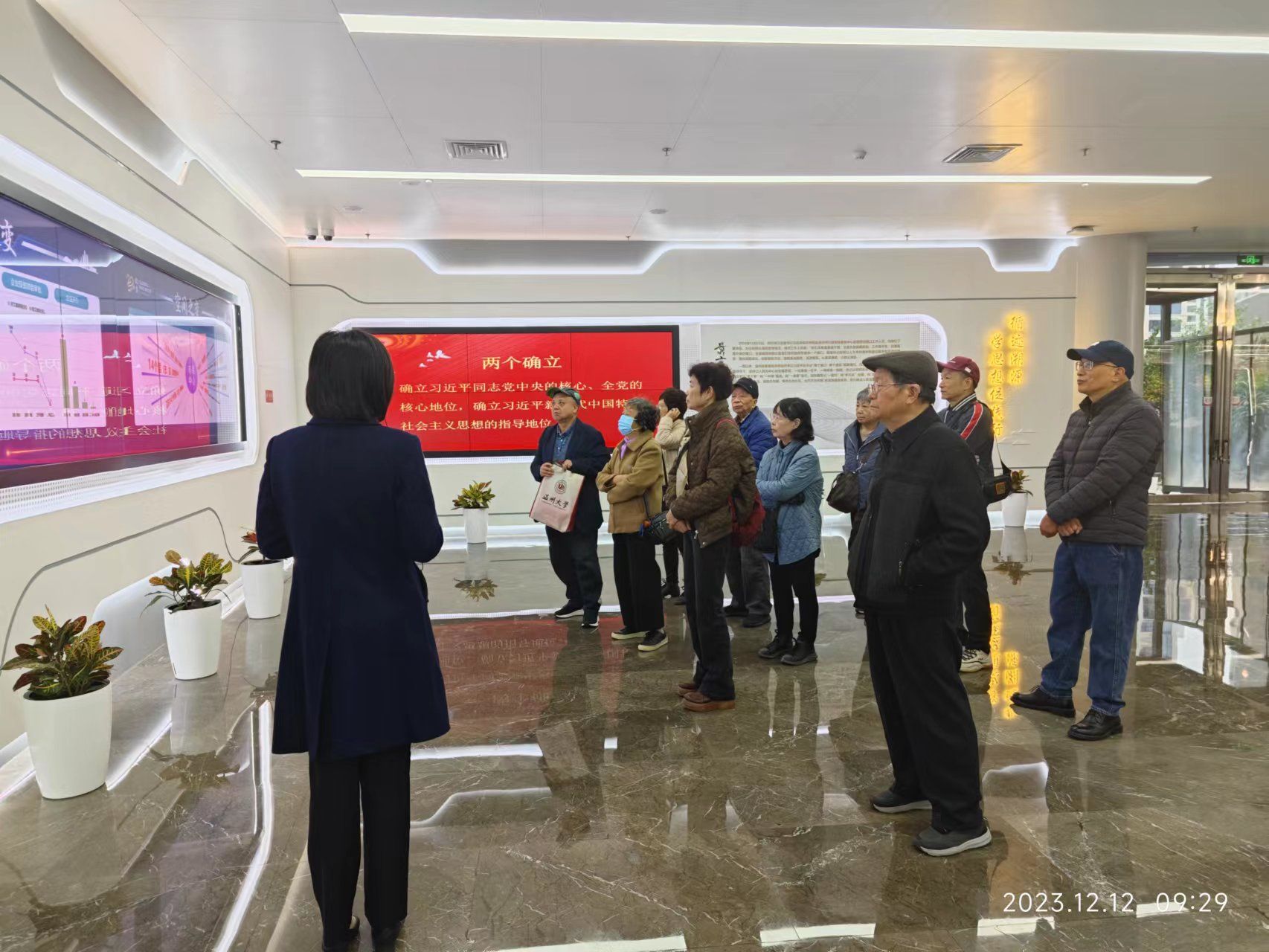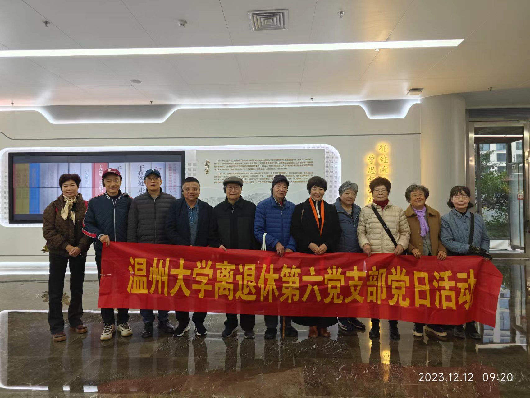 12月12日上午,离退休第六党支部11位老党员,在支部书记吴小宇带领下,赴温州市民中心“循迹溯源”示范点现场研学。这是支部对标主题教育总要求开展的第三次线下活动。