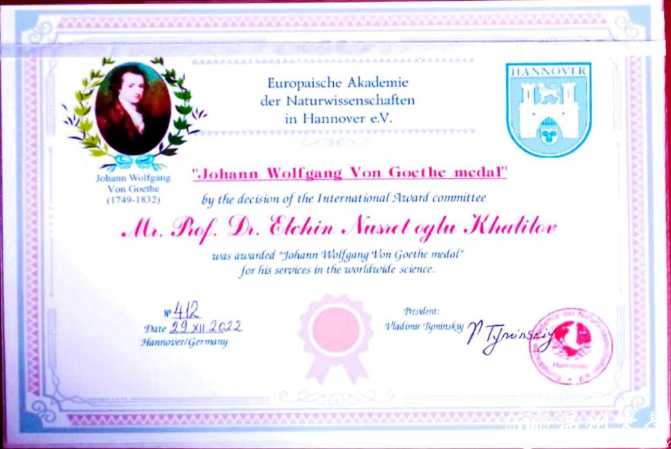 Prof. Elchin Khalilov Awarded Wolfgang von Goethe Medal by EANS
