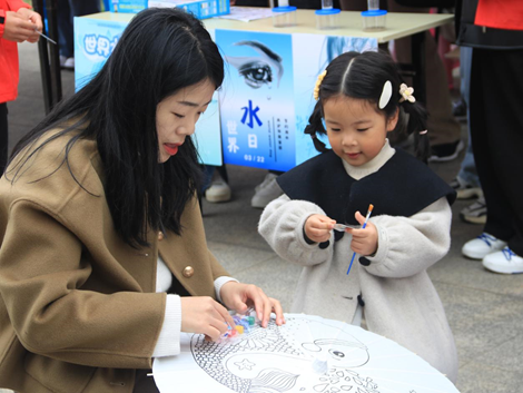 In the oil-paper umbrellas drawing zone, people were painting lucid waters and lush mountains with brushes. “Mum, let’s paint this spot yellow”, exclaimed a kid. On the other side, postgraduate students in water-related majors were sampling the water in the wetland through instruments and equipment. Holding beakers of the source of life, they were educating the public on water quality standards.