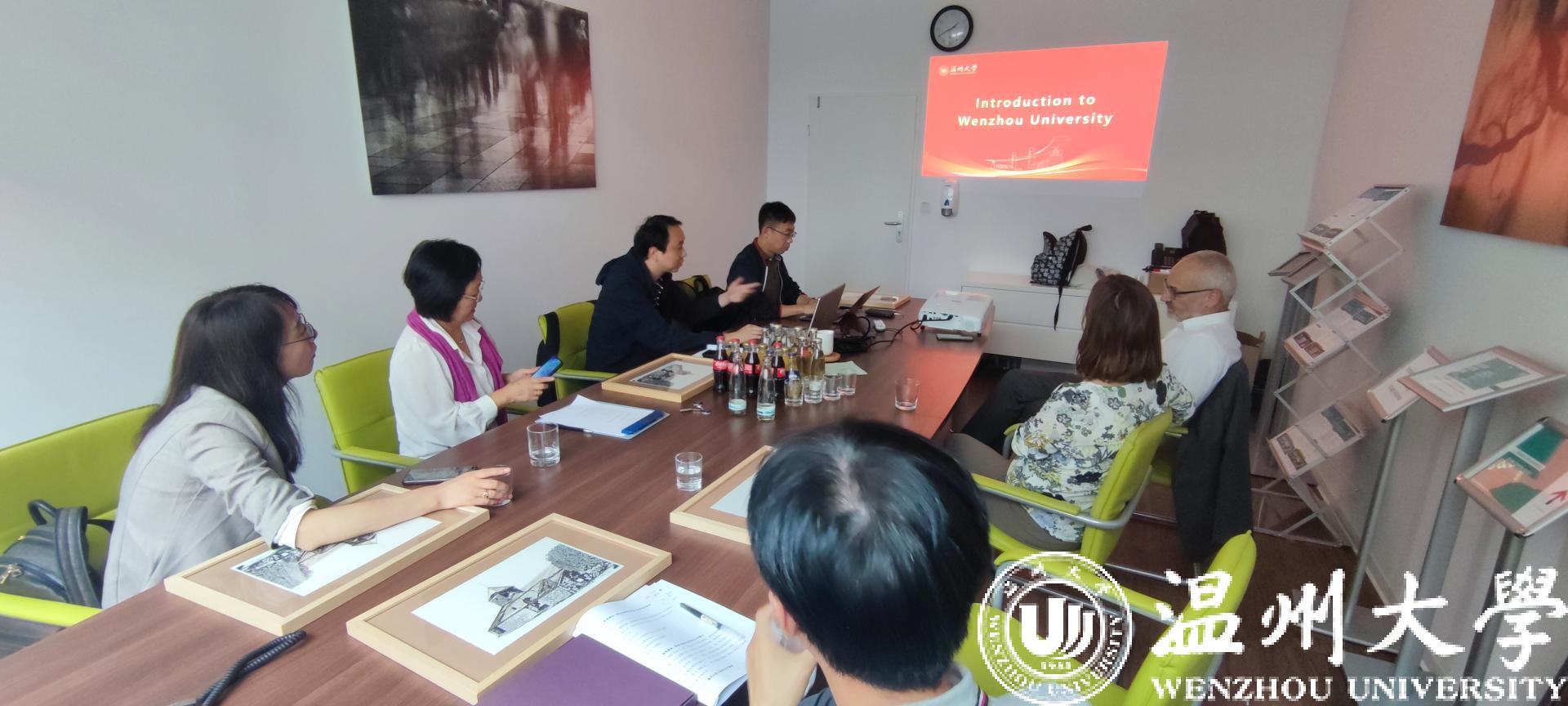 The two sides signed a memorandum of understanding and cooperation, and had in-depth discussions on the feasibility of a joint training program for undergraduate and graduate students majoring in digital marketing. Rector Prof. Klaus-Dieter Schulz accepted the invitation from WZU’s delegation and expressed his commitment to advancing the joint training of masters and facilitating academic exchanges between Chinese and German teachers and students.
