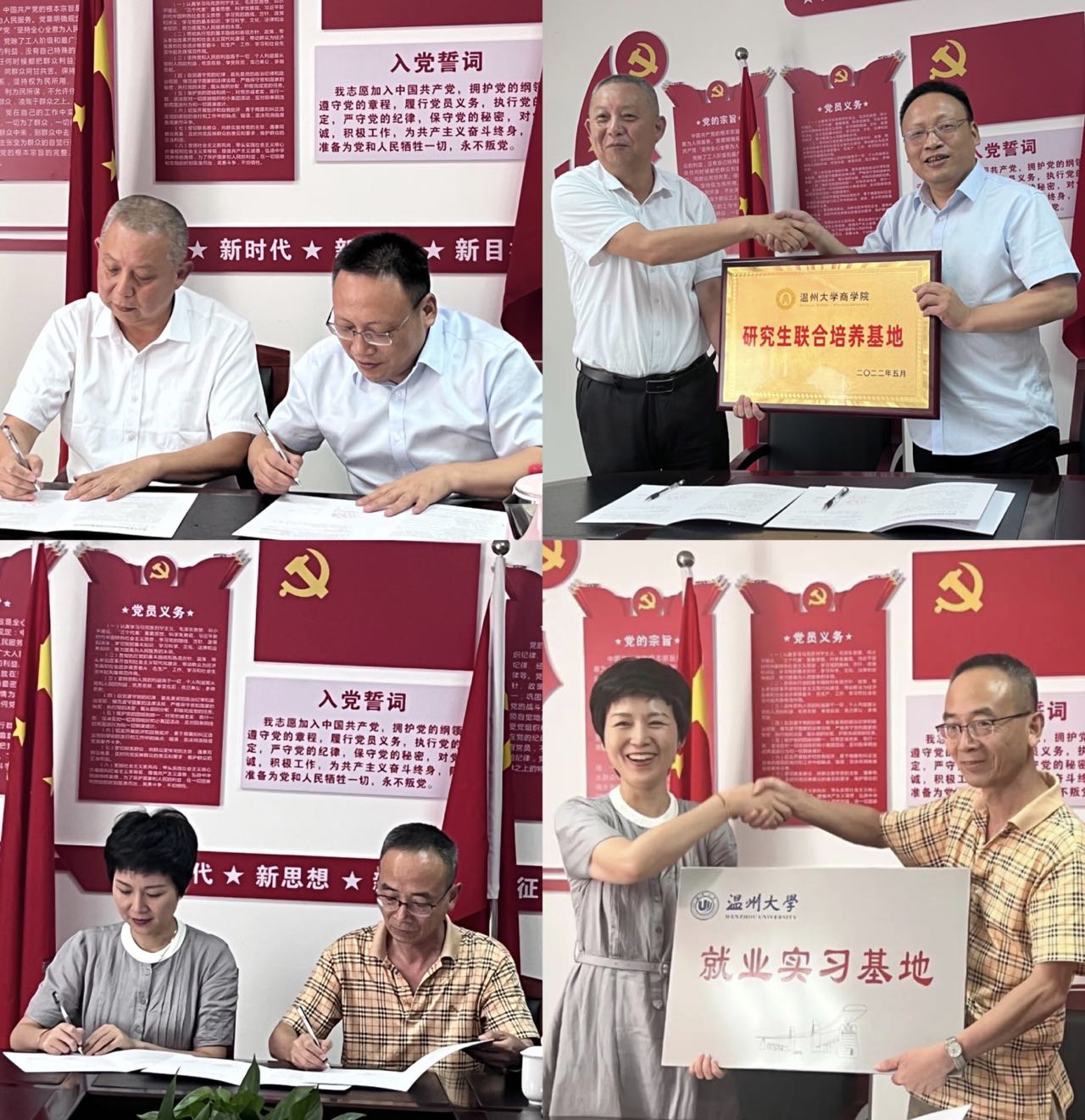 胡振华院长、李密书记与中源立德所刘董事长和夏书记签署基地合作协议并将日本a片 商学院研究生联合培养基地及日本a片 商学院就业实习基地的牌子授予温州中源立德会计师事务所。希望今后双方共育人才,为社会培养高质量的商科人才。