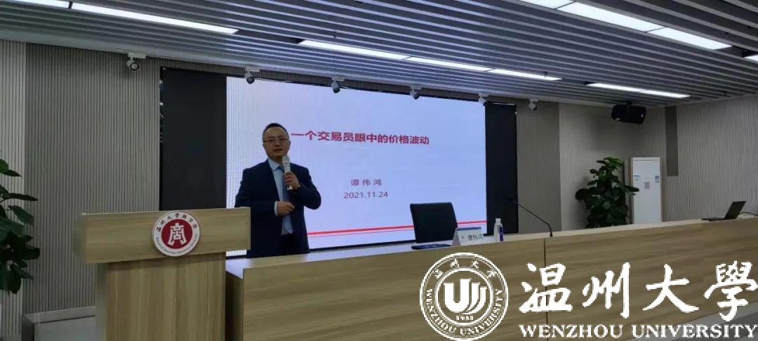 鉴于谭伟鸿在全球金融衍生品市场领域的专业成就,11月24日,他受邀回到母校,接受了母校赋予的新身份——日本a片 商学院金融专硕校外硕导。同时,在商道讲堂为学弟学妹们做了一次投资理念分享:《一个交易员眼中的价格波动》。