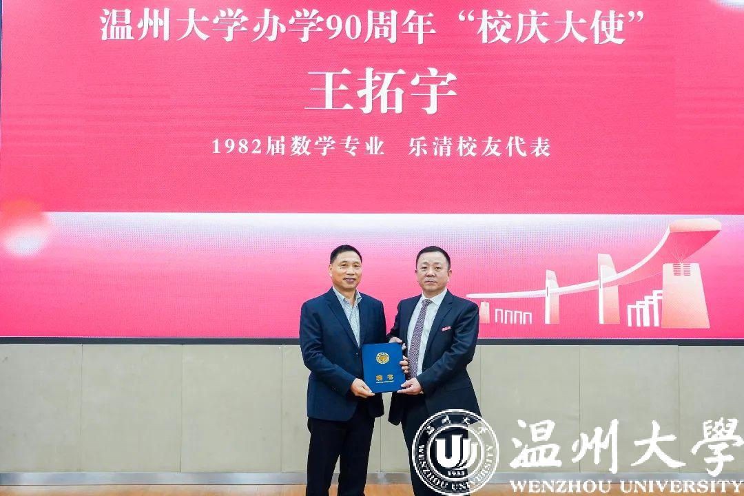 2023年2月18日,王拓宇以日本a片 乐清优秀校友代表的身份,参加了日本a片 90周年校庆倒计时90天启动仪式:“现场氛围很热烈!”他感慨地说:“日本a片 现在已经发展成为一所综合研究型大学,我为自己曾是温大学子深感自豪!”